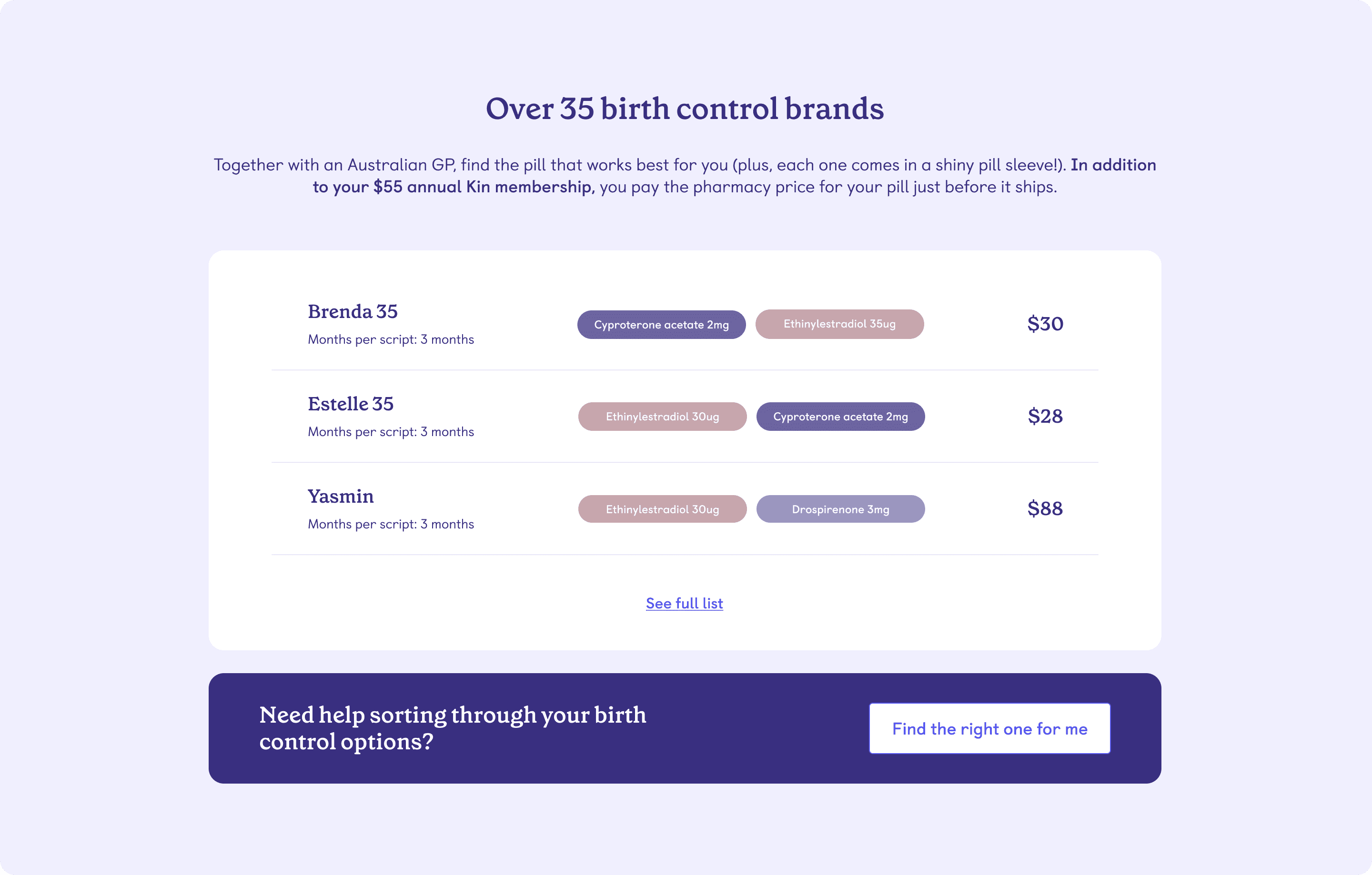 The users also want to see the inclusions of Kin’s pill subscription as well as the FAQs